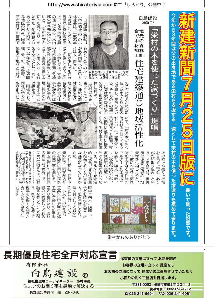 「しらとリビア」 白鳥建設ニュースレター 88号